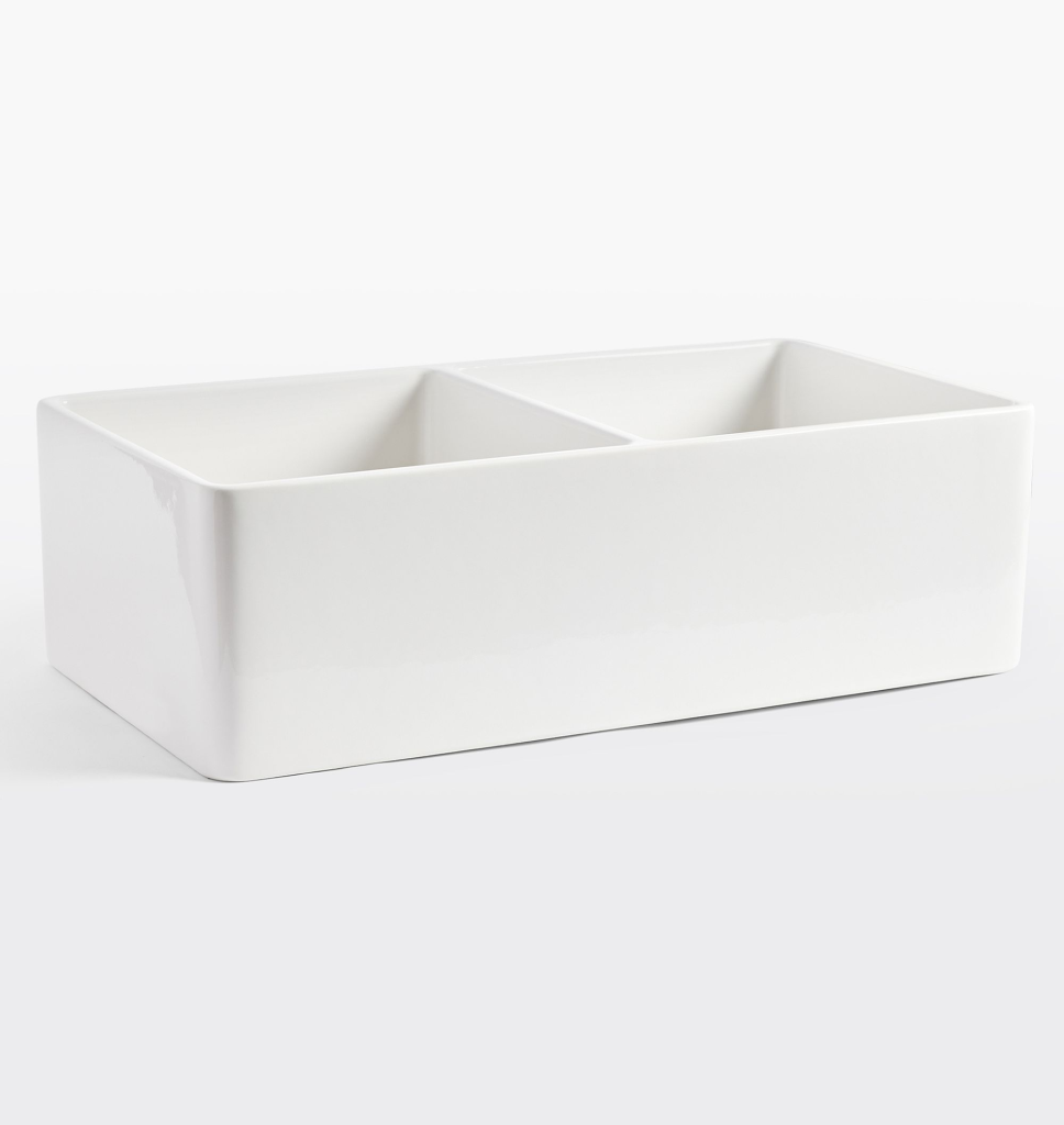 Next, I explored Rejuvenation’s hardware collection and stumbled upon the Frost Fireclay Double Kitchen Sink. It’s crafted in Italy with dense fireclay and a porcelain enamel glaze that inhibits bacterial growth and includes a bottom rack to help deter scratching.